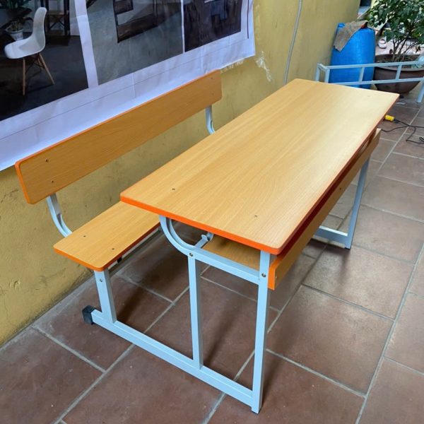 Bàn học sinh liền ghế tựa lưng chất liệu mặt gỗ công nghiệp cao cấp , khung sắt phun sơn chắc chắn giúp chống han rỉ rất tốt. Loại bàn này được dùng trong không gian phòng học giúp bạn có thể học tập hiệu quả .