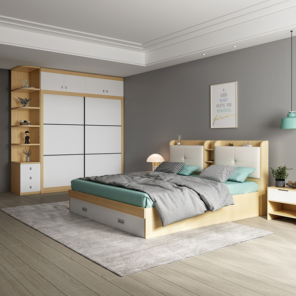 Tủ áo kết hợp kệ trang trí với các góc bo tròn mềm mại tạo sự tinh tế, thời thượng. Đồng thời, kệ tích hợp có thể làm góc trang trí cho căn phòng trở nên phong cách hơn. Bạn có thể để sách, túi xách đắt tiền hoặc bày một vài khung ảnh cá nhân, gia đình. Kệ 3 ngăn kéo ngoài việc tăng tính thẩm mỹ cho tủ quần áo thì còn là nơi để bạn cất gọn những đồ đạc trong phòng ngủ để không gian phòng trở nên ngăn nắp và gọn gàng. Bên cạnh đó, phía trên gian tủ lớn còn được thiết kế 2 gian tủ nhỏ cánh mở là không gian lưu trữ chăn gối hay quần áo trái mùa của cả gia đình bạn.
